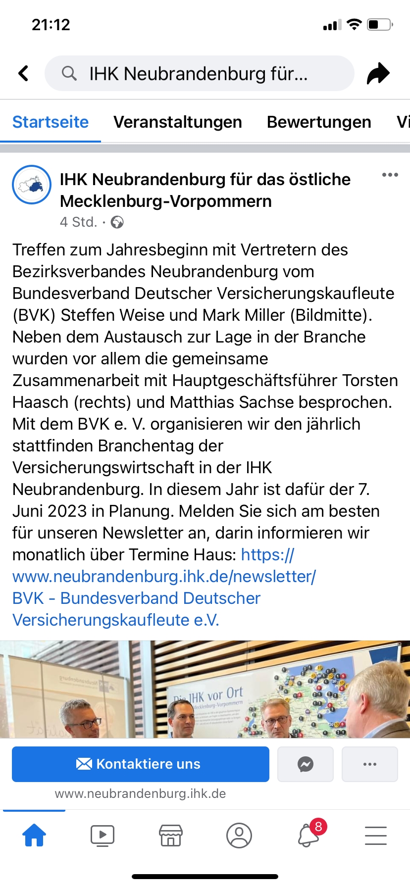 Neben dem Austausch zur Lage in der Branche wurden vor allem die gemeinsame Zusammenarbeit mit Hauptgeschäftsführer Torsten Haasch und Matthias Sachse besprochen. Mit dem BVK organisieren wir den jährlich stattfindenden Branchentag der Versicherungswirtschaft in der IHK Neubrandenburg.